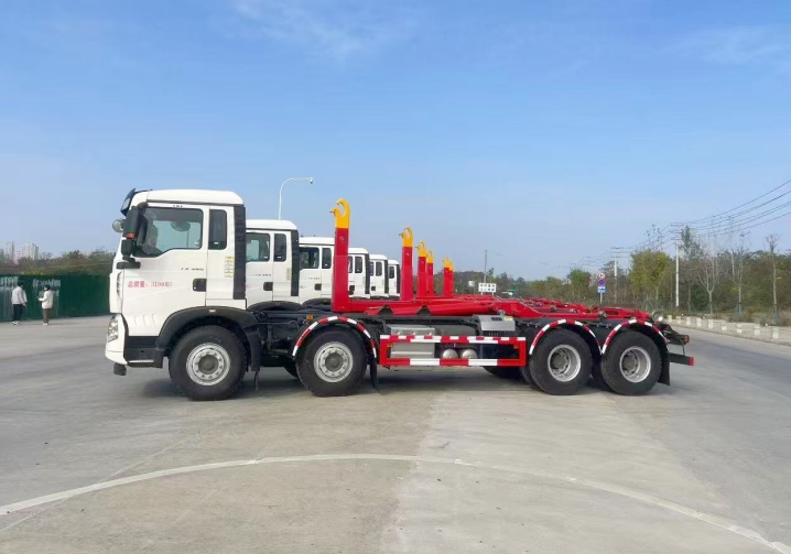 重汽前四后八勾臂垃圾車(chē)(又稱(chēng)車(chē)廂可卸式垃圾車(chē))是市政環(huán)衛、垃圾清運領(lǐng)域的重要設備,其核心優(yōu)勢在于“一車(chē)配多箱”,可循環(huán)運輸,顯